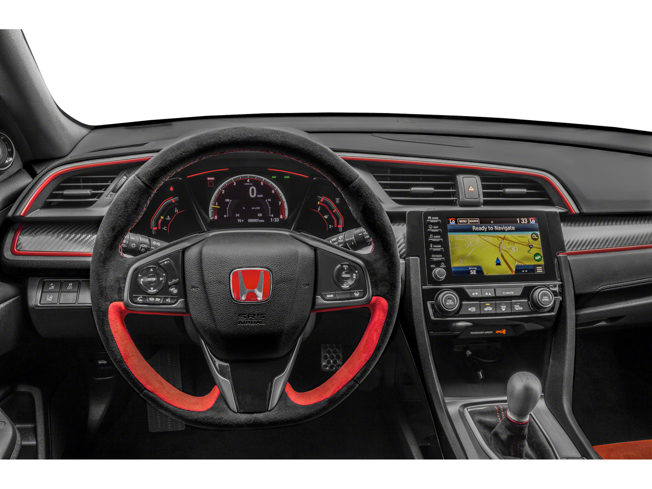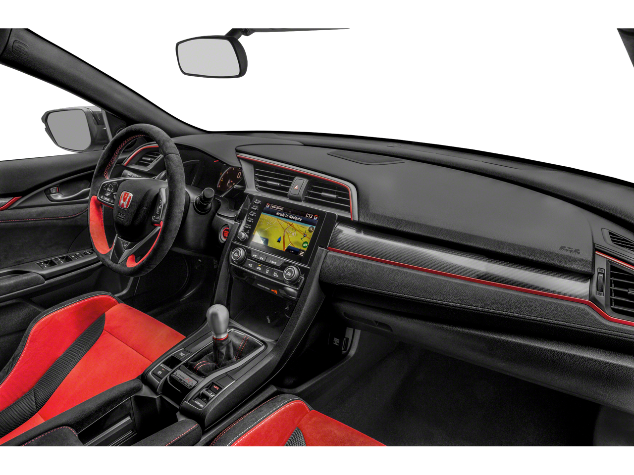 The interior of the Civic Type R Touring is a masterful blend of style and functionality. High-bolstered sport seats wrapped in suede-effect fabric keep you firmly in place during spirited driving, while the 12-speaker premium audio system and integrated navigation system ensure you're entertained and informed on every journey. Dual-zone automatic climate control, a rear-view camera, and a host of advanced safety features, including Collision Mitigation Braking System and Forward Collision Warning, provide both comfort and peace of mind.