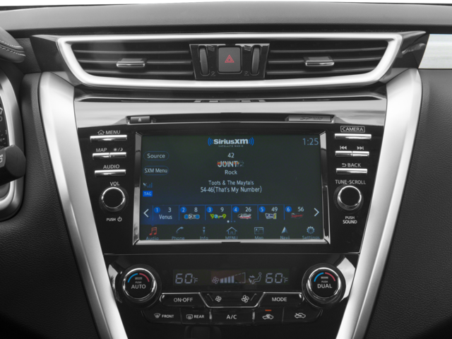 - Radio: AM/FM/CD Audio System w/Navigation -inc: MP3/WMA reader, 6 speakers, auxiliary audio input jack, SiriusXM satellite radio, NissanConnect w/Mobile Apps, 8" color display w/multi-touch control, voice recognition for navigation and audio, SiriusXM Traffic, SiriusXM Traffic Link, HD radio, front USB port, rear USB port, Bluetooth® hands-free phone system, streaming audio via Bluetooth®, and hands-free text messaging assistant