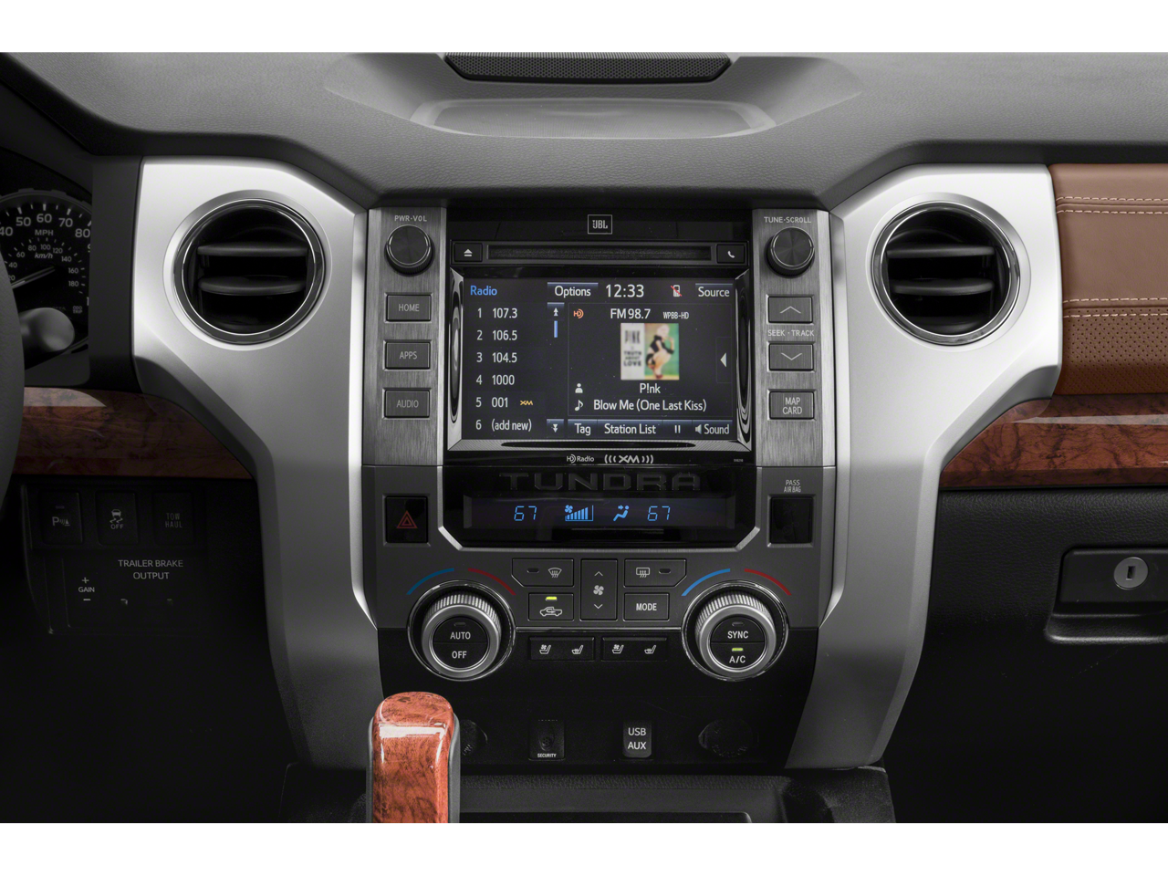 - Radio: Entune Premium w/JBL Audio & Navigation -inc: AM/FM/HD Radio, CD player MP3/WMA playback capability, integrated navigation system, AM/FM cache radio, 12 JBL speakers including subwoofer and amplifier, 7" high-resolution touch-screen display w/split-screen, auxiliary audio jack, USB 2.0 port w/iPod connectivity and control, Gracenote album cover art, HD predictive traffic and Doppler weather overlay, Bluetooth® hands-free phone capability w/advanced voice recognition, phone book access and music streaming and Siri Eyes Free, Entune App Suite, Destination Search, iHeartRadio, MovieTickets.com, OpenTable, Pandora, Yelp, Facebook Places, Slacker Radio and real-time info w/traffic, weather, fuel prices, sports and stocks, SIRIUSXM Satellite Radio, complimentary SiriusXM All Access 90-day trial subscription