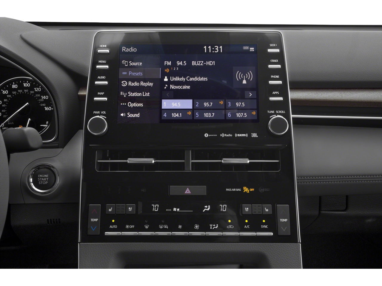 - Radio: Entune 3.0 JBL Audio System w/Navigation -inc: 14 speakers including subwoofer and 1200-watt amplifier, 9"touch screen, audio jack, USB 2.0 port w/iPod connectivity and control, Dynamic navigation, Dynamic POI search and Dynamic voice recognition w/3-year trial, Bluetooth hands-free phone capability and music streaming, Apple CarPlay, Siri Eyes Free, HD Radio, Entune App Suite and SiriusXM satellite radio w/3-month SiriusXM All Access trial