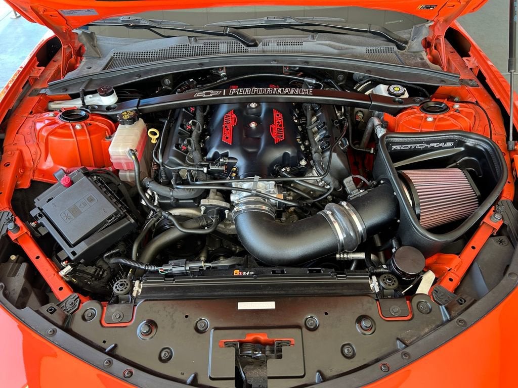 Comfort and convenience are also prioritized, with features like dual-zone automatic climate control, heated and ventilated front seats, and a heads-up display putting you in complete control. The Camaro's striking Crush Orange exterior and bold design elements turn heads wherever you go, while the well-appointed interior offers a refined, driver-focused cockpit.
