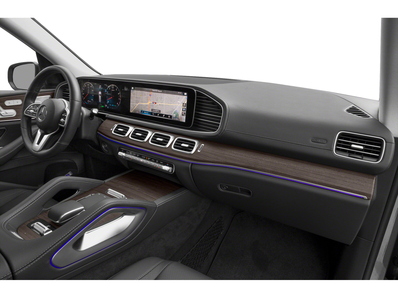 Step inside and be captivated by the GLS 450's unparalleled attention to detail. The cabin is swathed in premium materials, including genuine wood accents and MB-Tex upholstery, creating an environment of exceptional refinement. The spacious and versatile interior offers seating for up to seven passengers, ensuring ample room for family and friends.