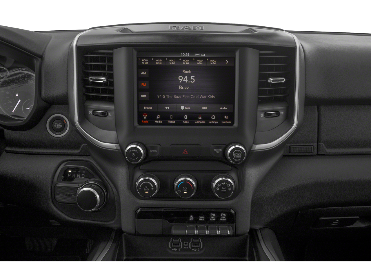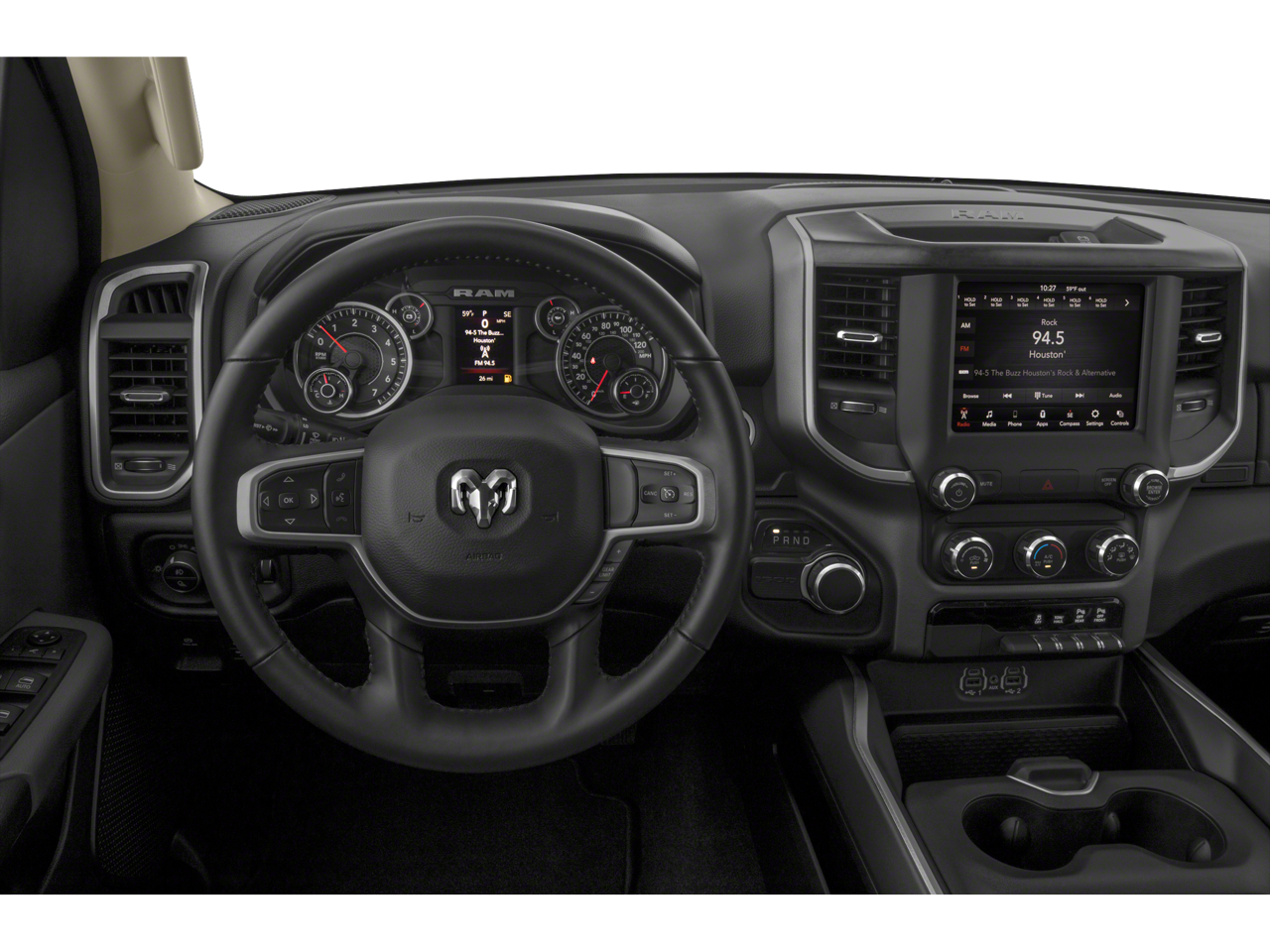Elevate your driving experience with the advanced features of the Big Horn Level 1 Equipment Group. Enjoy the convenience of the Uconnect 4 infotainment system with an 8.4 display, SiriusXM radio, and a rearview camera. Stay connected with Bluetooth® integration and voice commands. The power-adjustable driver's seat and power-folding mirrors add a touch of luxury, while the universal garage door opener and Class IV receiver hitch provide added versatility.