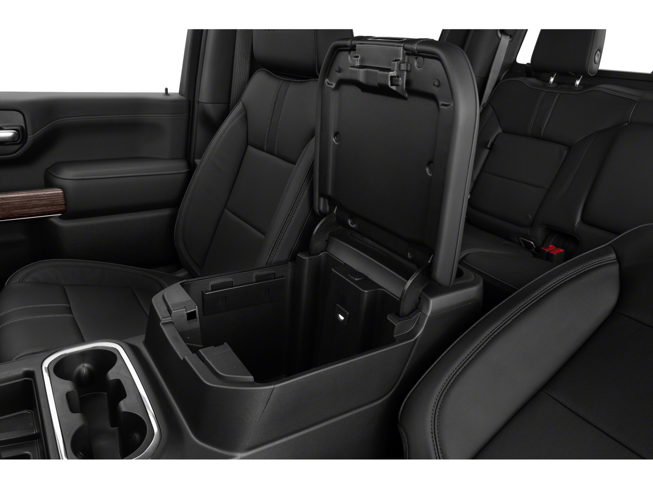 • Seat, Up-level Rear with Storage Package, 60/40 folding bench for Crew Cab models, includes full-length bench seat, seatback storage on left and right side, center fold out armrest with 2 cupholders, full cab width under-seat storage, (includes child seat top tether anchor) (Rear seat features leather seating surfaces.)