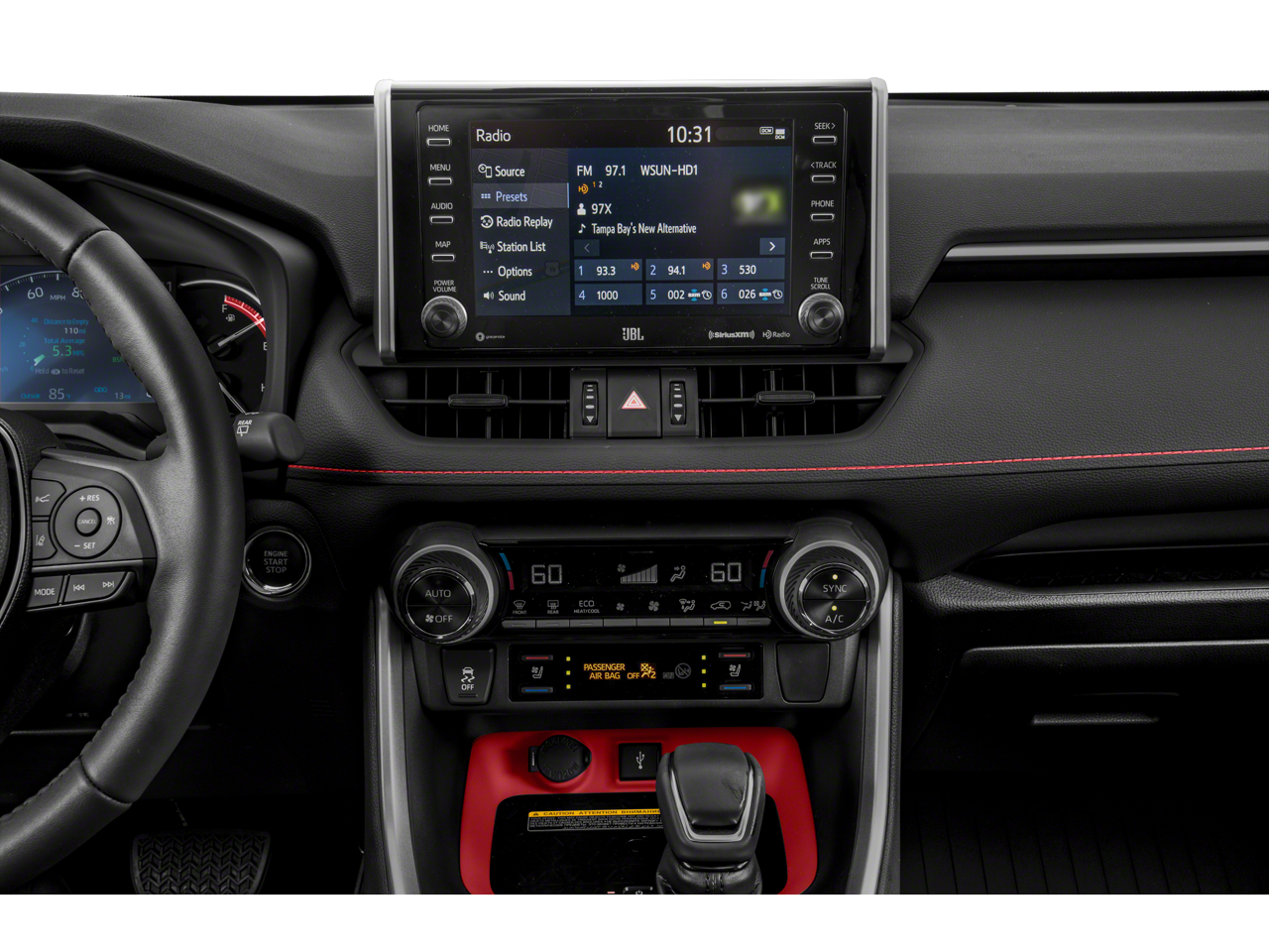 Step inside the RAV4 TRD Off Road and experience the perfect blend of capability and comfort. The spacious and well-appointed cabin features premium SofTex-trimmed seats, dual-zone automatic climate control, and a host of advanced technology, including Apple CarPlay and Android Auto integration.