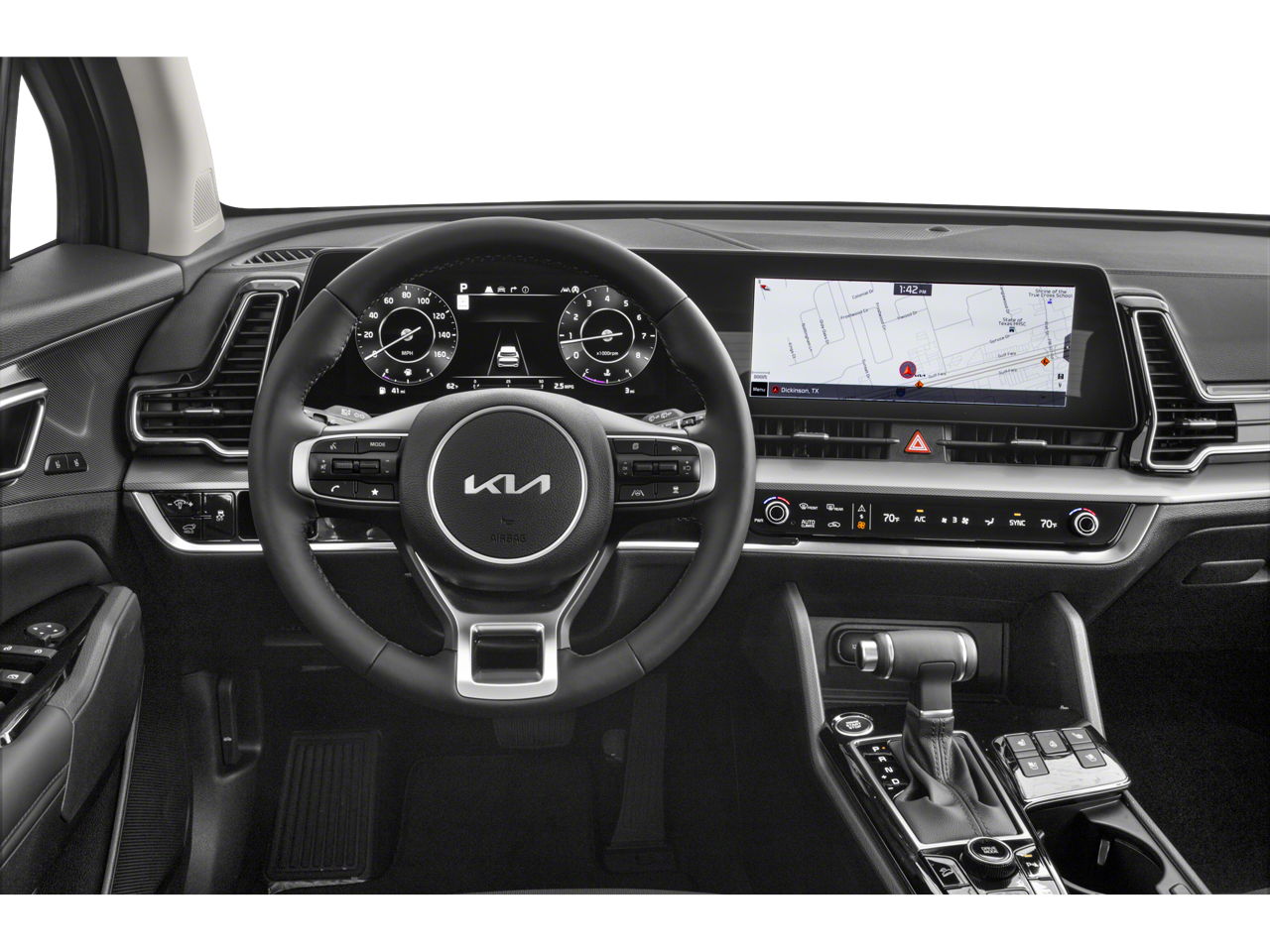 The interior of the Sportage SX-Prestige is a sanctuary of refined luxury. Indulge in the comfort of heated and ventilated front bucket seats, wrapped in premium Leatherette upholstery. The spacious cabin offers ample room for passengers and cargo, with a power liftgate and a host of smart storage solutions to accommodate your needs.