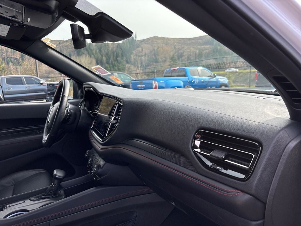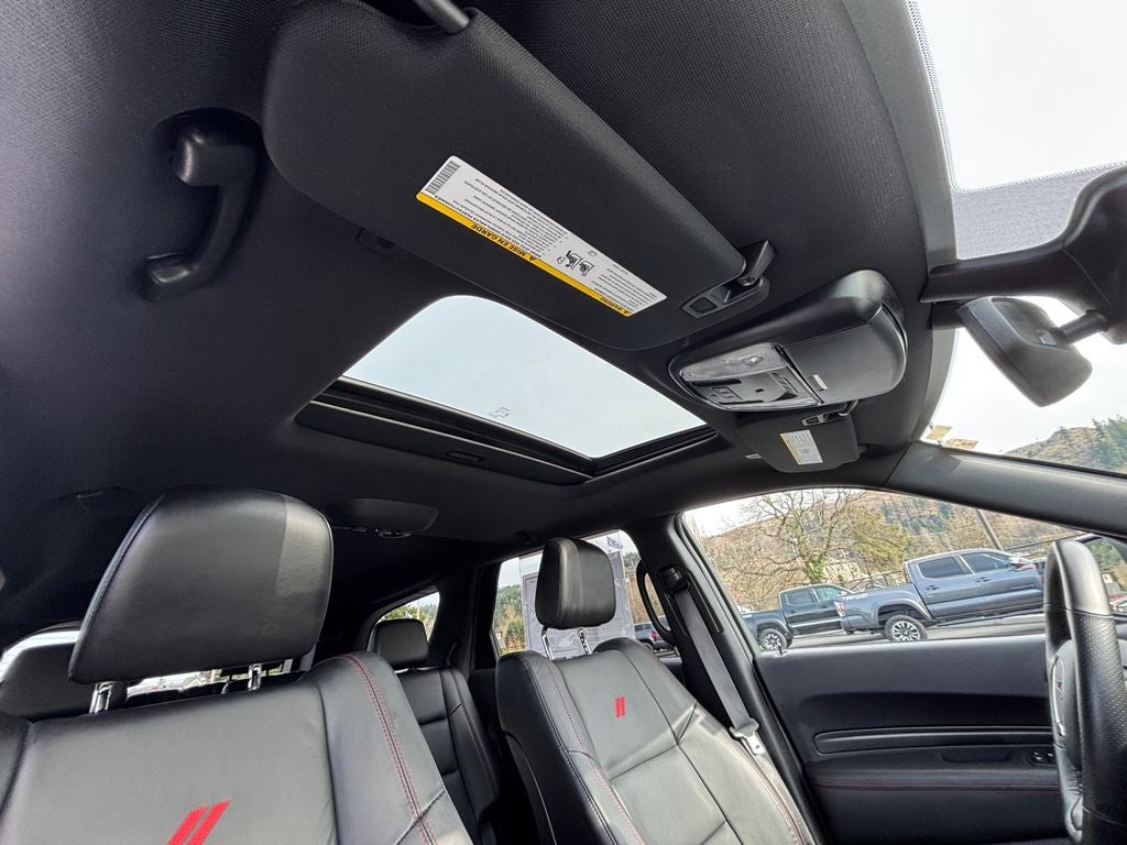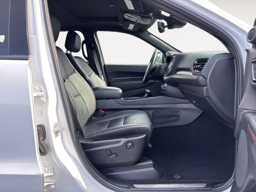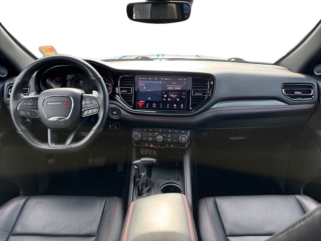 Step inside the Durango R/T and experience the epitome of refined luxury. Wrapped in a sleek, white exterior, this SUV boasts a stunning interior with premium leather-trimmed bucket seats, a heated steering wheel, and a suite of advanced technology features that will keep you connected and entertained.