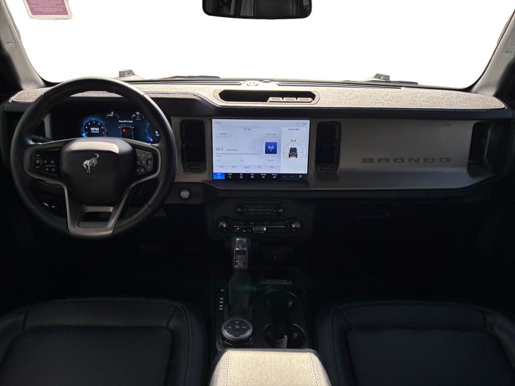 This Bronco Outer Banks is packed with a wealth of premium amenities, including - Navigation system: Connected Navigation, - Equipment Group 312A Mid Package, - 7 Speakers, - AM/FM radio: SiriusXM with 360L, - SYNC 4, - Automatic temperature control, - Power driver seat, - Remote keyless entry, - 4-Wheel Disc Brakes, - ABS brakes, - Emergency communication system: 911 Assist, - Integrated roll-over protection, - Internet access capable: FordPass Connect, - Exterior Parking Camera Rear, - Auto High-beam Headlights, - Heated Leather-Trimmed/Vinyl Bucket Seats, - Heated steering wheel, and much more.