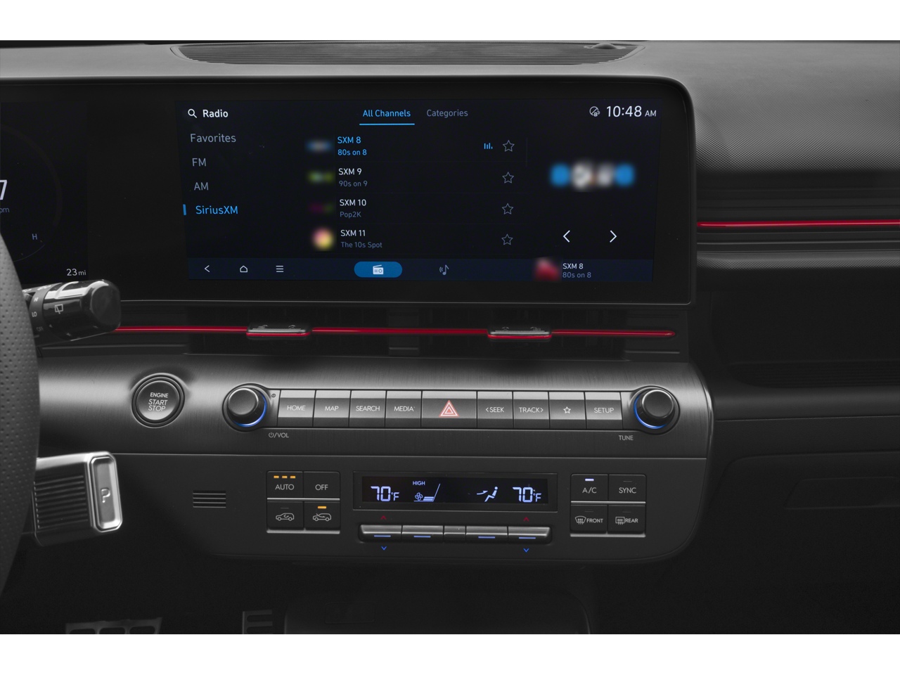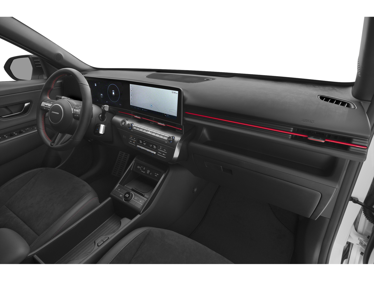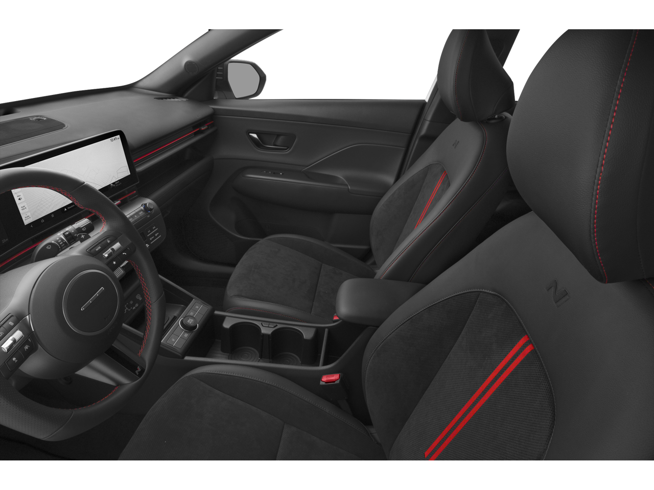 The Kona N Line's interior is a true sanctuary of comfort and convenience. Heated front sport bucket seats and a leather-wrapped steering wheel create a premium, driver-focused experience. Meanwhile, the advanced infotainment system with navigation, Apple CarPlay, and Android Auto seamlessly integrates your digital life, keeping you connected and entertained on the go.