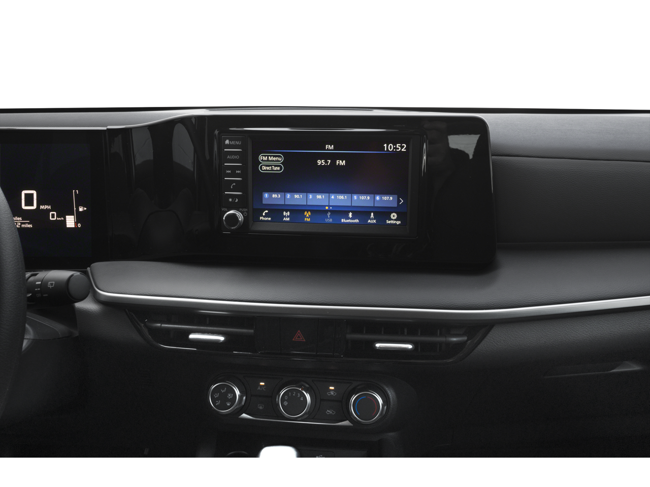Stepping inside the Kicks S, you'll be greeted by a well-appointed cabin that combines style and functionality. Cloth Seat Trim, a Sport Steering Wheel, and Telescoping Steering Wheel provide a comfortable and engaging driving experience. The Infotainment System with AM/FM Radio, Bluetooth® Connectivity, and Steering Wheel-Mounted Audio Controls keeps you connected and entertained on the go.